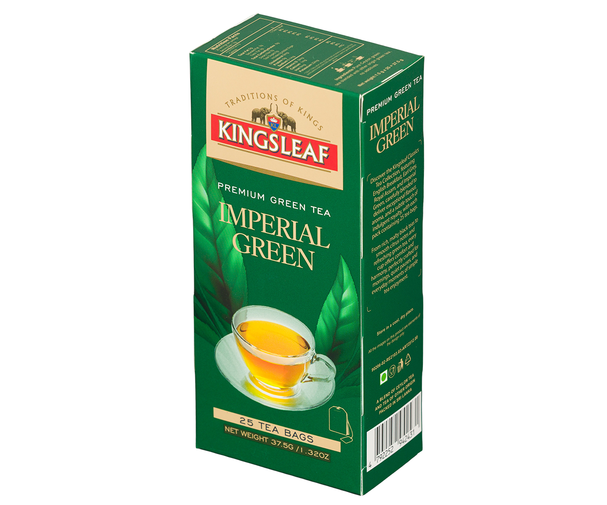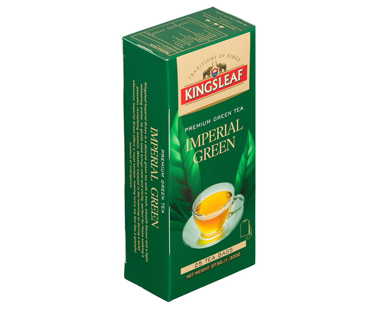 Kingsleaf Imperial Green is a delicate green tea with a fresh, smooth flavour and a light, refreshing aroma. Its gentle taste brings calm and clarity, perfect for those seeking a peaceful, revitalizing moment. Whether enjoyed in the morning or during a quiet afternoon, Imperial Green offers a royal escape, making every sip feel like a graceful moment of indulgence.