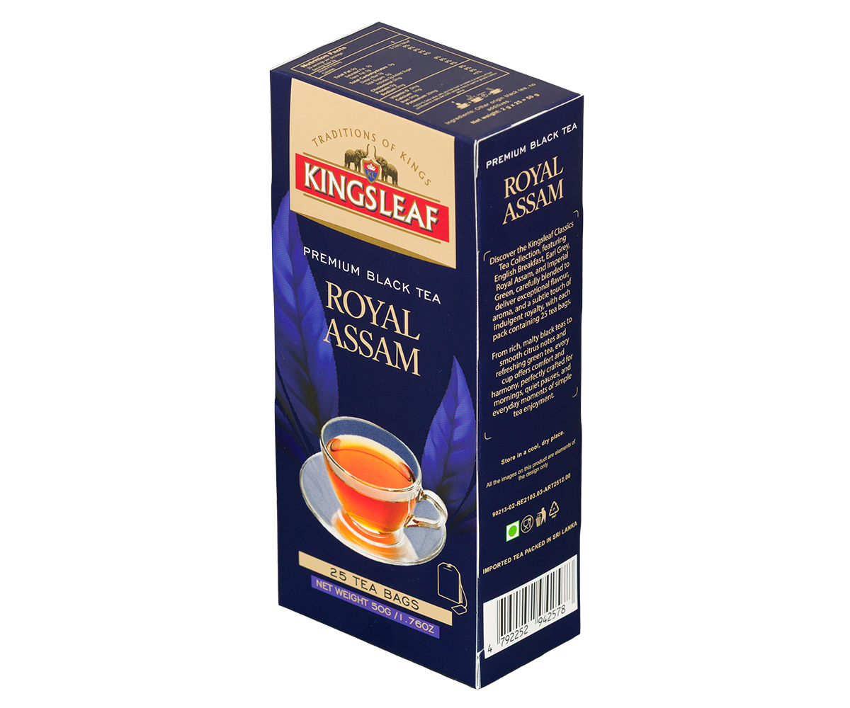 Kingsleaf Royal Assam is a full-bodied black tea with a rich, malty flavour and a bold, brisk aroma that fills the air. Its deep, warming taste offers a perfect balance of strength and smoothness, delivering both comfort and energy. With every sip, Royal Assam brings the royal indulgence you deserve, turning even the simplest moment into a special experience.